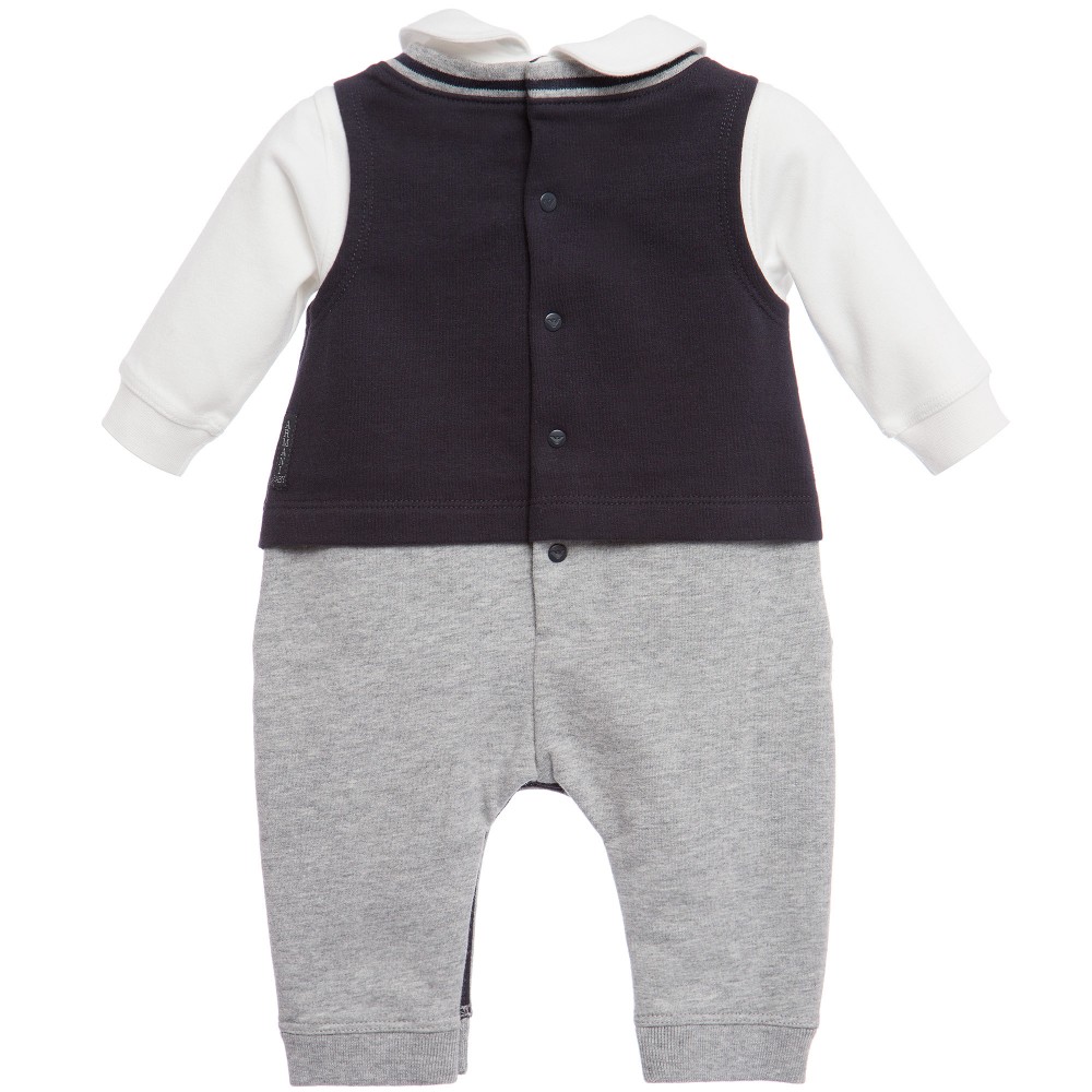 Uma linha bebê boutique mais “acessível” é a BOSS. Esse macacão mais branco que a nuvem custa R$309,34+frete. Não sei quanto tempo duraria esse branco tão branco, mas a gola polo dá um charme!