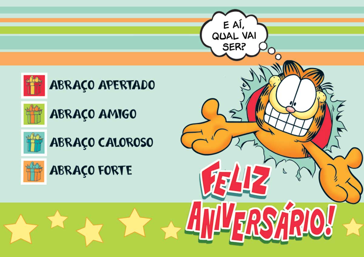 Juntando a irreverência do Garfield com a personalização das papelarias, você pode fazer você mesma o cartão de aniversário, e seu filho vai adorar colocar a mão na cola, no glitter e tudo mais que a criatividade de vocês permitir!