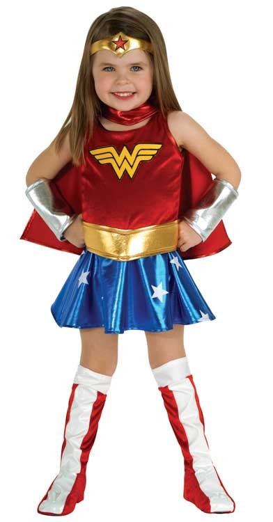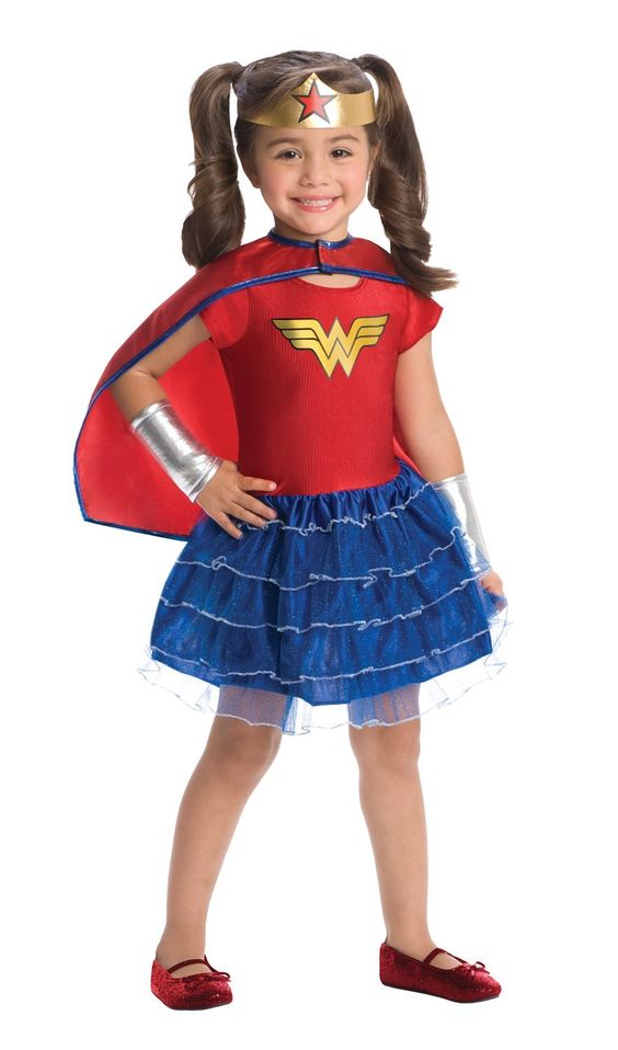 Que menina não gosta de se fantasiar de Mulher-Maravilha? As cores vermelhas, azul e dourado dão um show a parte. Geralmente usando botas cano longo, mas também podem ser sapatilhas no verão. O que não pode esquecer é a tiara dourada.