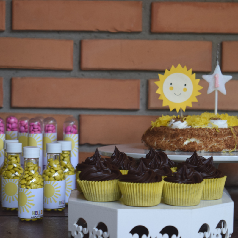 O bolo foi bem simples (e com o calor começou a desandar… mas os cupcakes aguentaram firmes o calor), o bolo foi mais para colocar a vela e solzinho para enfeitar!