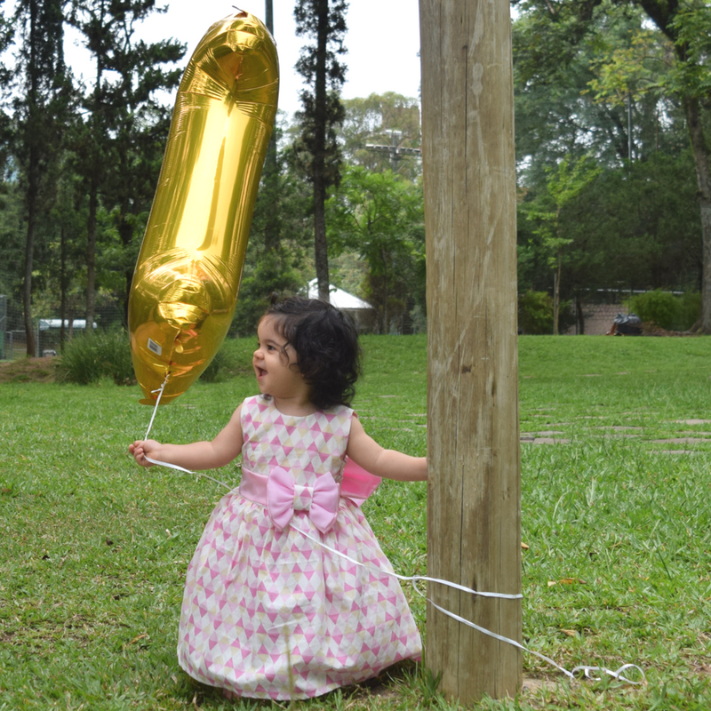 O balão metalizado com o número 1 é da marca Regina Festas, você encontra diversos temas e itens para decorar uma festa infantil. Já estou de olho nos temas dessa marca para o aniversário da minha mais velha, Isabela que fará 5 anos em junho… ela ainda não decidiu se vai ser Barbie, Frozen ou Lady Bug, mas tem tempo para decidir ainda!