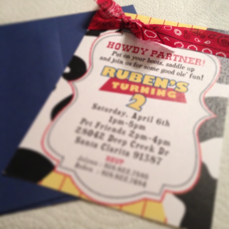 Um detalhe fofo desse primeiro convite é a fitinha vermelha amarrada no topo do convite parecida com o lenço que o Woody usa no pescoço!