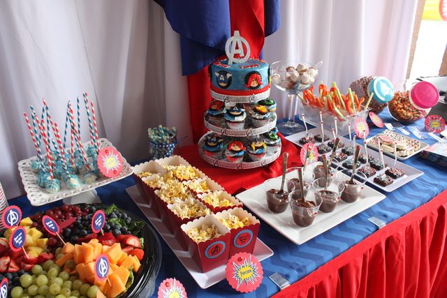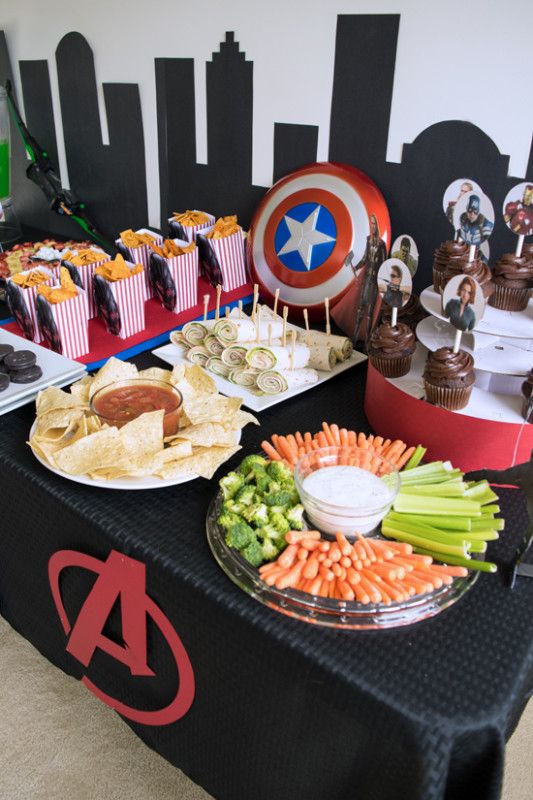 O cardápio pode ser saudável, afinal de contas, um herói precisa de energia e alimentos saudáveis! Ofereça frutas, gelatinas e pipoca! A turma sempre adora! Mas se quiser mais dicas para uma festa infantil totalmente saudável, leia este post AQUI e arrase!